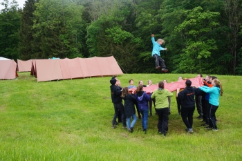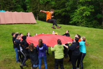 Die Resie zu unserer Walpurgisnacht ging über Stock und Stein mit einer wundervollen Aussicht und einigen Begegnungen mit Tieren. Nur die Tapfersten der Jungehexen durften an der Walpurgisnacht teilnehmen. So stellten die Teilnehmer ihre eigenen Besen, Hexenhüte und Zaubertränke her. Und man kann wohl sagen, dass die selber hergestellten Zaubertränke besonders gut schmecken. Schon am ersten Tag wurden wir von einer kurzen Regenschauer überrascht, doch auch diese konnten wir mit unserer Hexenkraft schnell vorbeiziehen lassen. Nachdem die Wiese allmählich wieder trocken war, duellierten sich die Teams im Hexenhockey, im verzauberten Fussball und im Ultimate. Sie bewiesen ihren Mut indem sie sich weit in den Himmel zaubern liessen mithilfe eines Sprungtuches. Gemeinsam feierten wir die Walpurgisnacht mit viel Tanz und Gesang und natürlich mit einem feinen z'Nacht direkt vom Feuer.